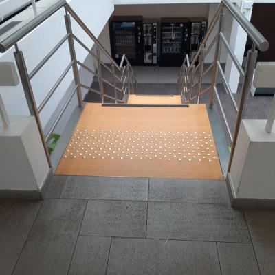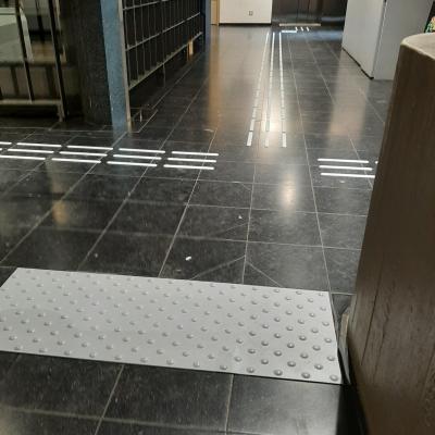 Voir la galerie Télécharger le PDFPODOTACTILE : BANDE EN RELIEF D'EVEIL A LA VIGILANCE (clous, plots ou tapis podotactiles) / Bande d'aide à l'orientation (voir onglet "Aides Techniques")