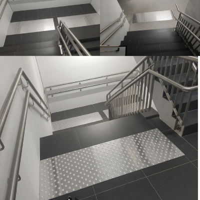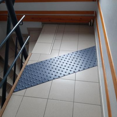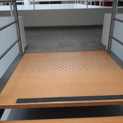 Voir la galerie Télécharger le PDFPODOTACTILE : BANDE EN RELIEF D'EVEIL A LA VIGILANCE (clous, plots ou tapis podotactiles) / Bande d'aide à l'orientation (voir onglet "Aides Techniques")